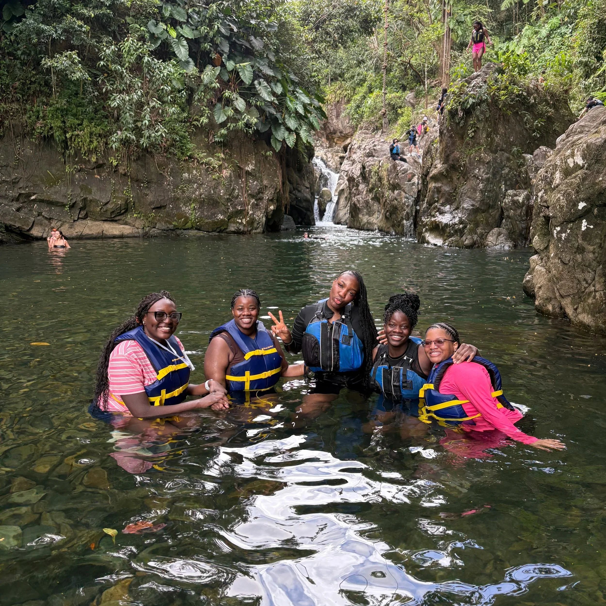 • Cliff jumping into clear water pools